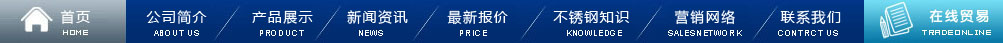首頁(yè) | 公司簡(jiǎn)介| 產(chǎn)品展示 | 新聞資訊 | 最新報(bào)價(jià) | 不銹鋼知識(shí) | 營(yíng)銷網(wǎng)絡(luò) | 在線留言 | 聯(lián)系我們